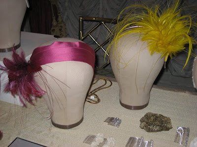 Jennifer Behr was one of the talented people I met last night at the BFF Event. She creates these spectacular headpieces that lean more towards the untraditional bride….perfect for me! I completely fell head over heels over her yellow feathered headpiece…they can come in an array of colors, but this particular one might actually work out perfectly for my green + white theme with a splash of yellow-y goodness! I also loved the patent leather orchid combs…very hip and modern…those also can come in different colors, but I think the white is a strong enough statement because of the texture. Best of all, she’s a Brooklyn girl! Check her out!
